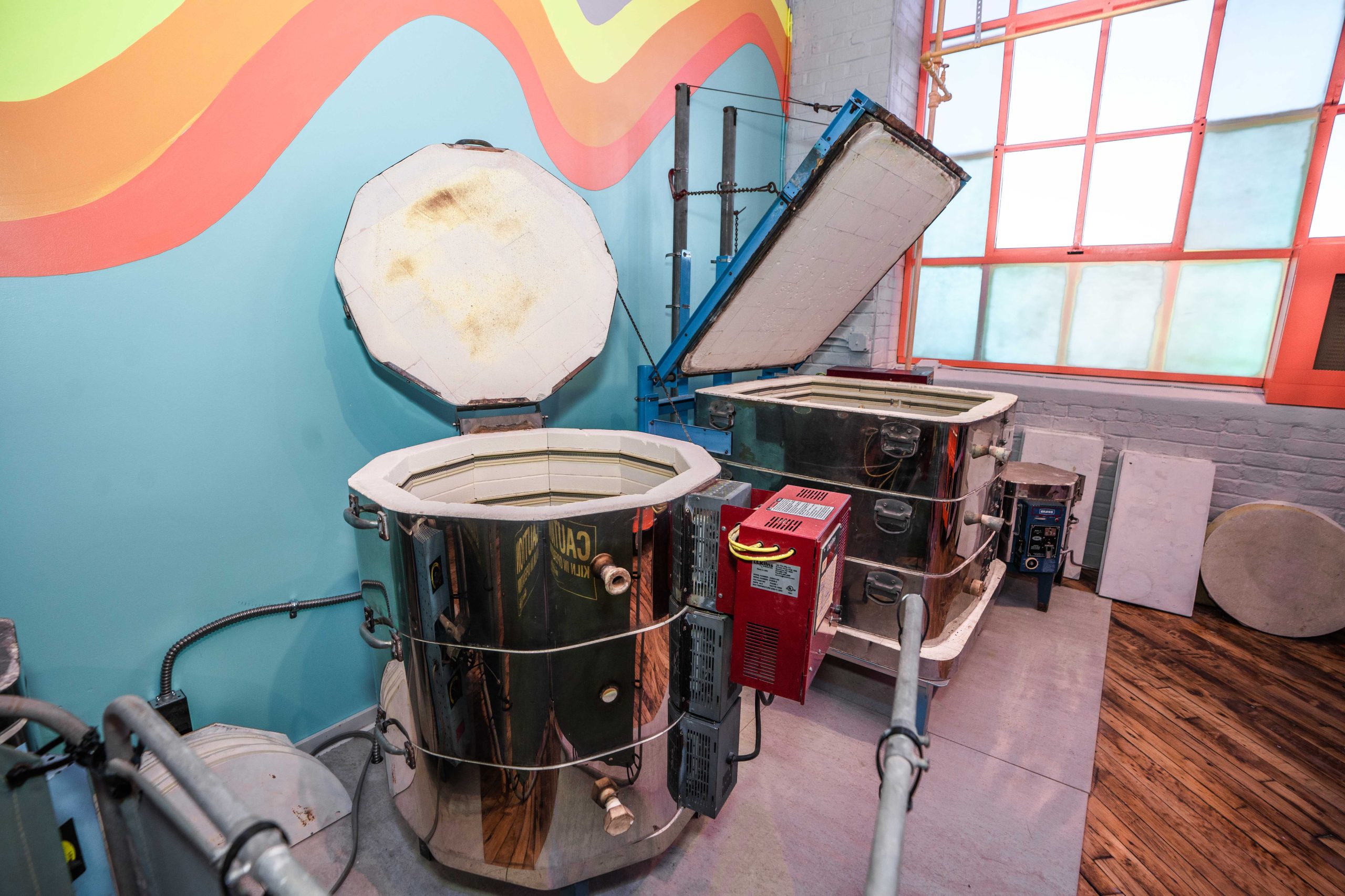 We have 9 electric kilns on site, ranging in size from small test kilns to a huge 14.5 Cubic Foot L&L DiVinci Series Kiln. All of our kilns are digitally controlled except the test kilns.