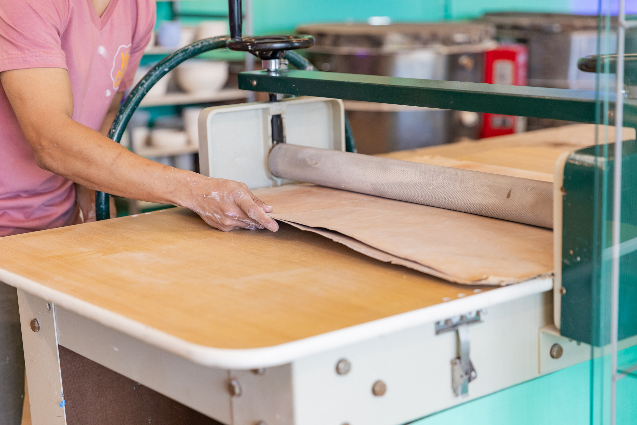 A slab roller is used in ceramics to prepare flat sheets or clay slabs. It’s great for creating tiles, plates, and sculptural pieces.